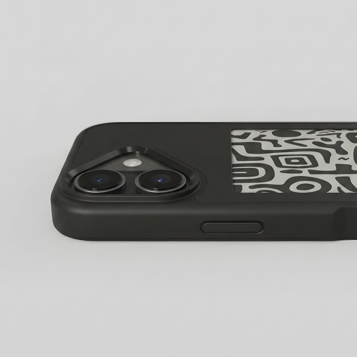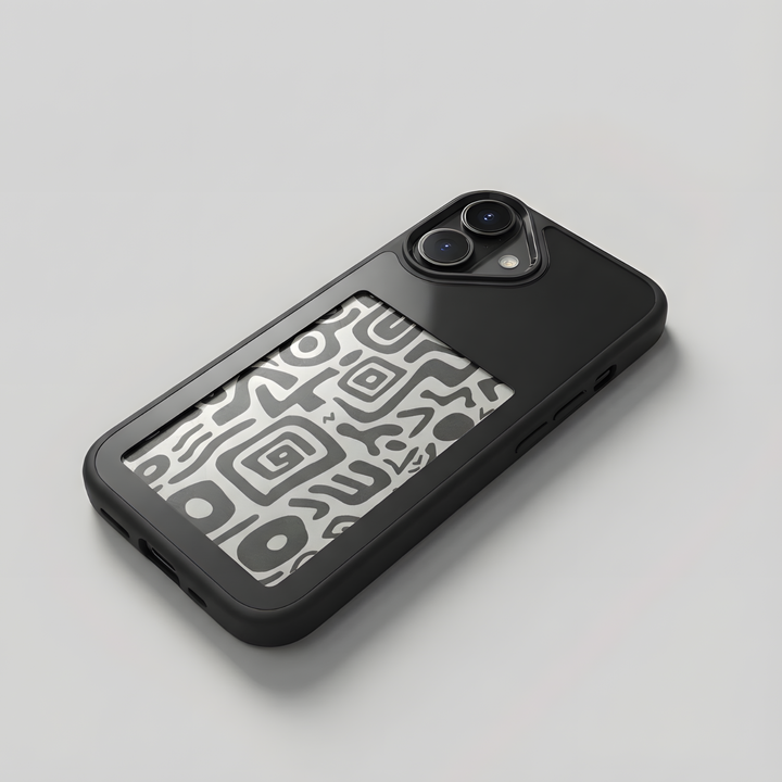 Your phone briefly creates an NFC field (13.56 MHz). The case’s tiny antenna harvests that energy (no battery) while a micro-controller receives a compressed black-and-white image over NFC. It then drives the e-ink panel to rearrange pigment particles and draw the picture. Power is used only during the 2–5 second refresh; once set, the e-ink is bistable, so the image stays with zero power until you change it.
