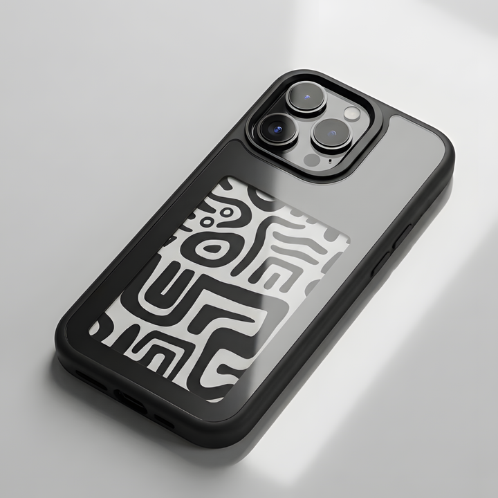 Tu teléfono crea brevemente un campo NFC (13,56 MHz). La diminuta antena de la funda capta esa energía (sin batería) mientras un microcontrolador recibe una imagen comprimida en blanco y negro a través de NFC. A continuación, activa el panel de tinta electrónica para reorganizar las partículas de pigmento y dibujar la imagen. La energía se consume solo durante la actualización de 2 a 5 segundos; una vez activada, la tinta electrónica es biestable, por lo que la imagen permanece sin energía hasta que la cambies.