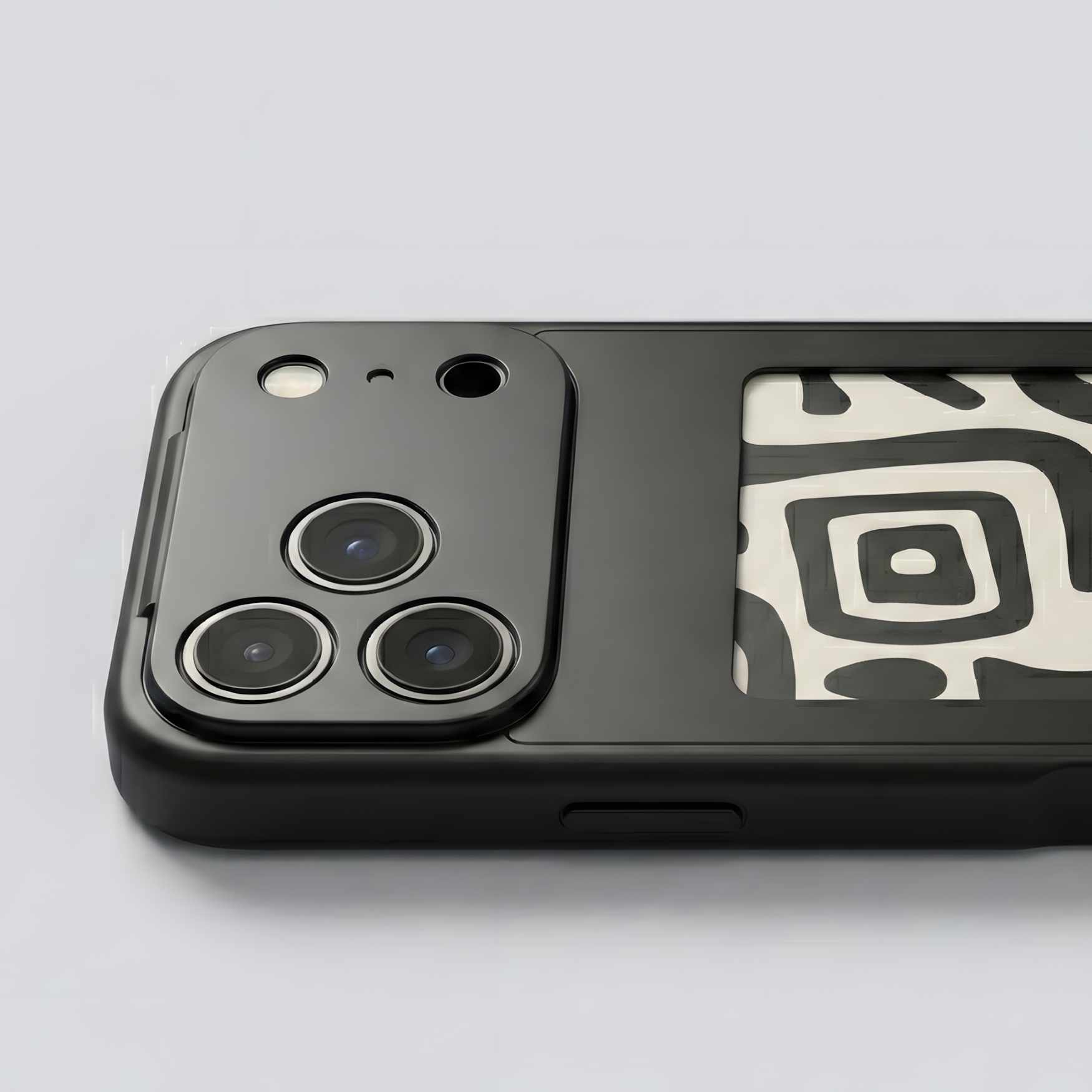 Your phone briefly creates an NFC field (13.56 MHz). The case’s tiny antenna harvests that energy (no battery) while a micro-controller receives a compressed black-and-white image over NFC. It then drives the e-ink panel to rearrange pigment particles and draw the picture. Power is used only during the 2–5 second refresh; once set, the e-ink is bistable, so the image stays with zero power until you change it.